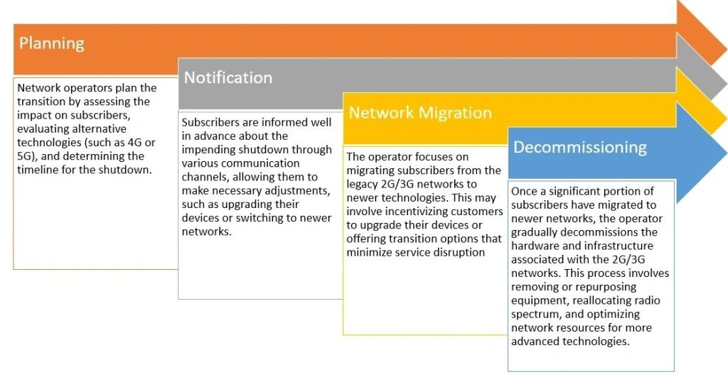 The process of shutting down legacy networks typically involves the following steps: