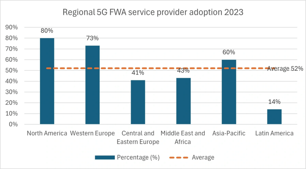 - North America: Verizon and T-Mobile have reported strong 5G FWA uptake in North America, leading to accelerated connection growth.