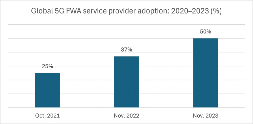 - Australia: All major service providers in Australia, including Telstra, Optus, NBN, and TPG, have reported strong 5G FWA growth. TPG, for instance, surpassed 200 thousand connections during 2023.
