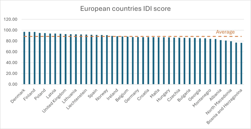 European countries IDI score