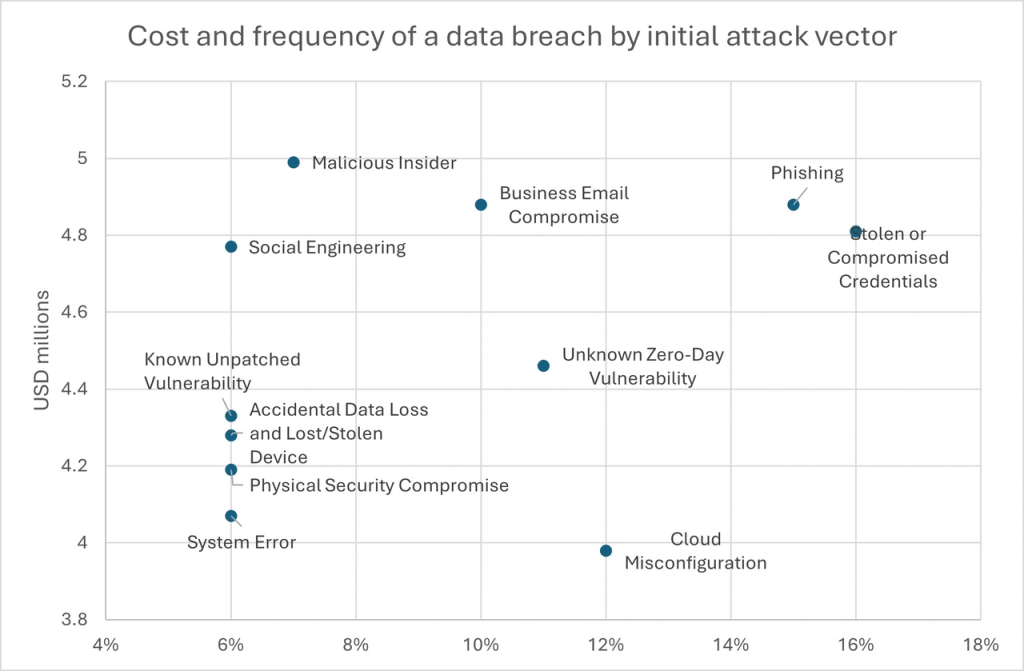 Cost and frequency of a data breach by initial attack vector