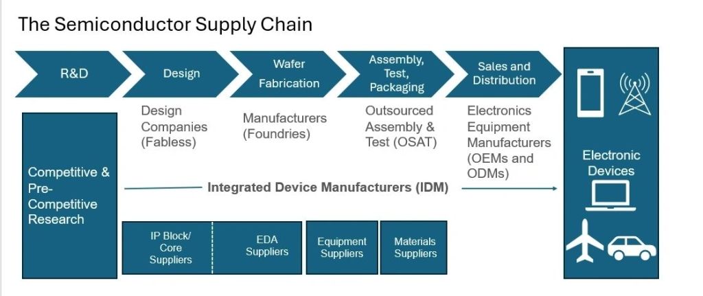The semiconductor value chain, comprising a diverse array of global chip players, serves as the backbone of the modern economy. These companies work in concert to facilitate the design, production, and distribution of semiconductors, which are essential for countless applications across various industries. The collective strength and collaboration among these stakeholders ensure a steady supply of advanced technologies that drive innovation and efficiency. This interconnected network not only supports existing tech infrastructure but also fosters the development of new solutions, highlighting the critical role of semiconductors in shaping the future of global commerce and technology. The figure below illustrates a simplified flow of this value chain, offering insight into the intricate processes involved.